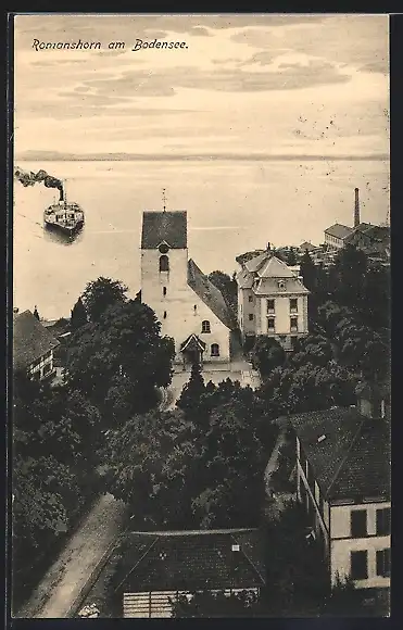 AK Romanshorn am Bodensee, Strassenpartie mit Kirche