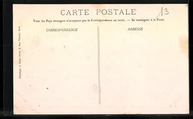 Personenbezogene Daten auf der Rückseite der Karte wurden durch blauen Textmarker unkenntlich gemacht. Die blauen Stellen sind auf die Vorderseite durchgeweicht und wirken sich negativ auf das Postkartenfoto aus