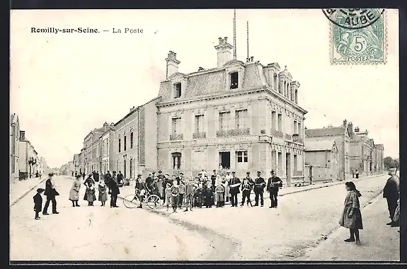 AK Romilly-sur-Seine, La Poste et groupe de personnes devant le bâtiment