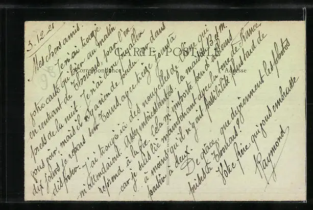 Personenbezogene Daten auf der Rückseite der Karte wurden durch blauen Textmarker unkenntlich gemacht. Die blauen Stellen sind auf die Vorderseite durchgeweicht und wirken sich negativ auf das Postkartenfoto aus