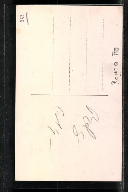Personenbezogene Daten auf der Rückseite der Karte wurden durch blauen Textmarker unkenntlich gemacht. Die blauen Stellen sind auf die Vorderseite durchgeweicht und wirken sich negativ auf das Postkartenfoto aus
