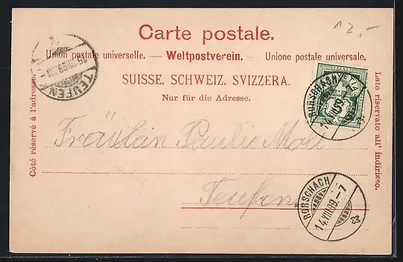 alte Ansichtskarte, gelaufen 1899, guter Zustand