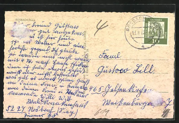 alte Ansichtskarte, gelaufen 1962, rückseitig Klebe- und Papierreste, sonst guter Zustand