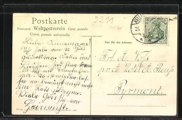 alte Ansichtskarte, gelaufen, rückseitig Oberflächenschaden, Stempelspur, sonst guter Zustand