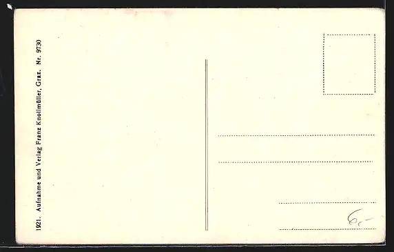 Personenbezogene Daten auf der Rückseite der Karte wurden durch blauen Textmarker unkenntlich gemacht. Die blauen Stellen sind auf die Vorderseite durchgeweicht und wirken sich negativ auf das Postkartenfoto aus