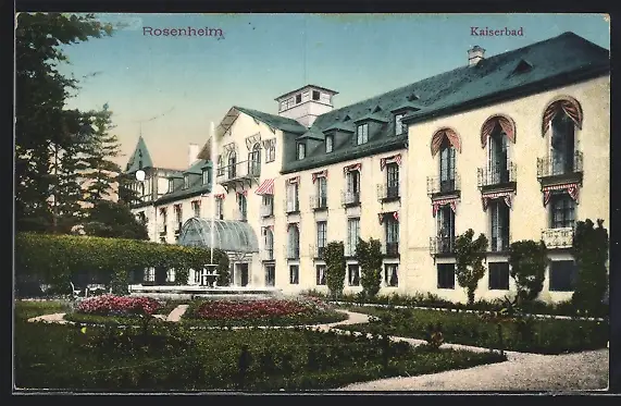 AK Rosenheim, Kaiserbad mit Springbrunnen