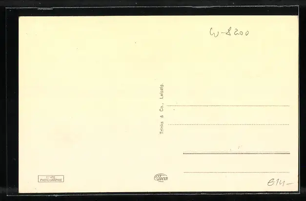 Personenbezogene Daten auf der Rückseite der Karte wurden durch blauen Textmarker unkenntlich gemacht. Die blauen Stellen sind auf die Vorderseite durchgeweicht und wirken sich negativ auf das Postkartenfoto aus