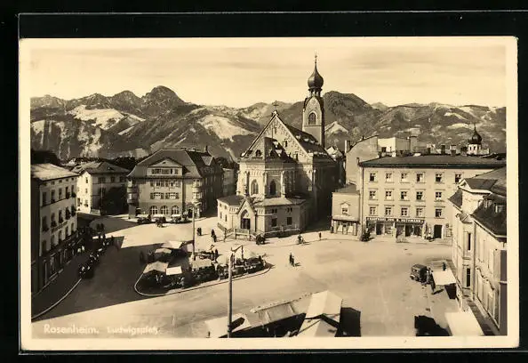 AK Rosenheim, Ludwigsplatz mit Kirche