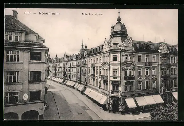 AK Rosenheim, Münchnerstrasse mit Gasthaus