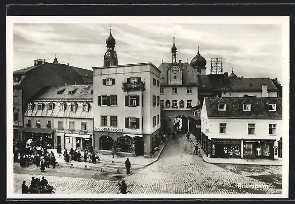 AK Rosenheim / Obb., Strassenpartie mit Geschäften
