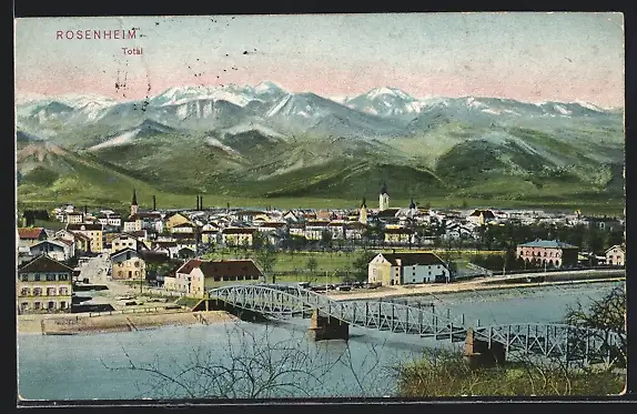 AK Rosenheim / Obb., Totalansicht mit Brücke