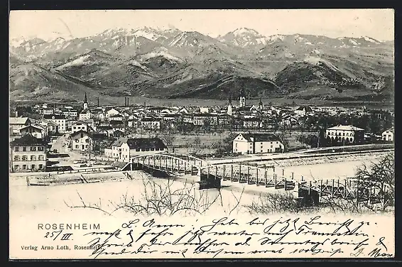 AK Rosenheim / Obb., Totalansicht mit Brücke
