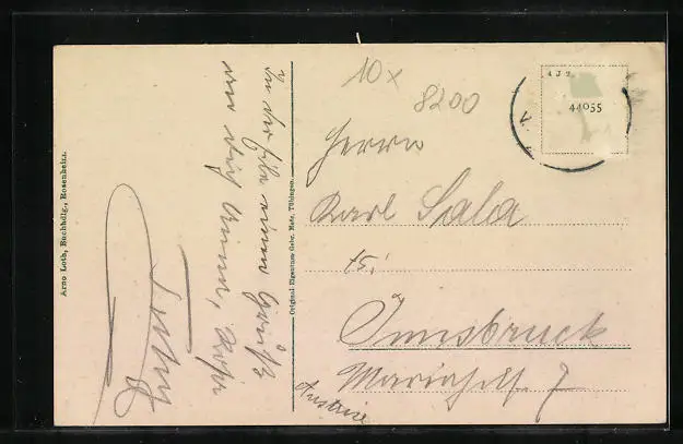 alte Ansichtskarte, gelaufen, Briefmarke entfernt, guter Zustand