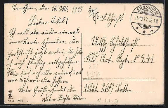 alte Ansichtskarte, gelaufen 1917, Eckknick li. oben, guter Zustand
