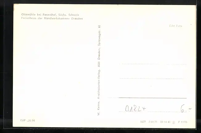 AK Rosenthal /Sächs. Schweiz, Ottomühle, Ferienheim der Handwerkskammer
