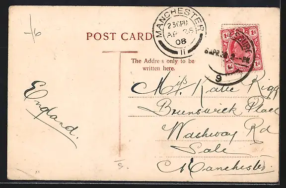 alte Ansichtskarte, gelaufen 1908, Eckknick re. unten, guter Zustand
