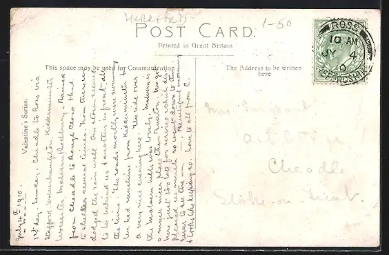 alte Ansichtskarte, gelaufen 1910, Eckknick re. oben, guter Zustand