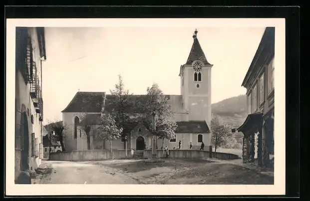 AK Rossatz a. d. Donau in der Wachau, Ortspartie mit Kirche