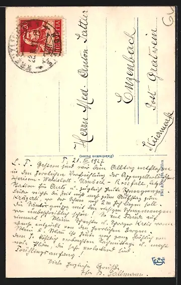 alte Ansichtskarte, gelaufen 1927, Stempelspur, guter Zustand