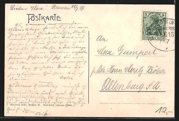 alte Ansichtskarte, gelaufen 1909, guter Zustand
