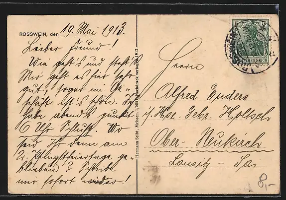 alte Ansichtskarte, gelaufen 1913, guter Zustand