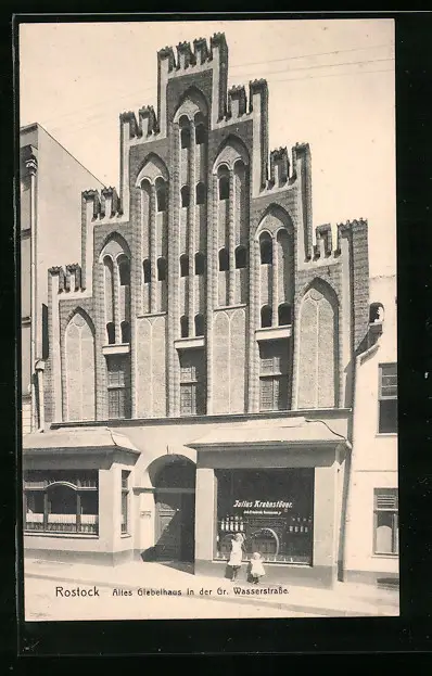 AK Rostock, Altes Giebelhaus in der Gr. Wasserstrasse
