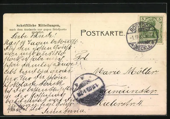 alte Ansichtskarte, gelaufen 1905, Stempelspur, Eckknick li. unten, guter Zustand