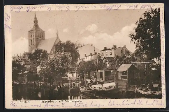 AK Rostock, Fischerbruch mit Nicolaikirche