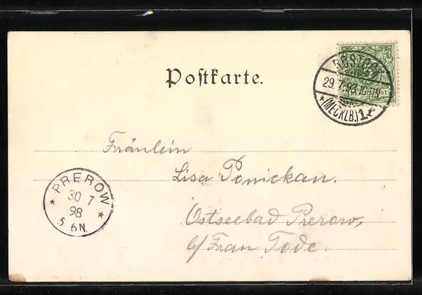 alte Ansichtskarte, gelaufen 1898, guter Zustand