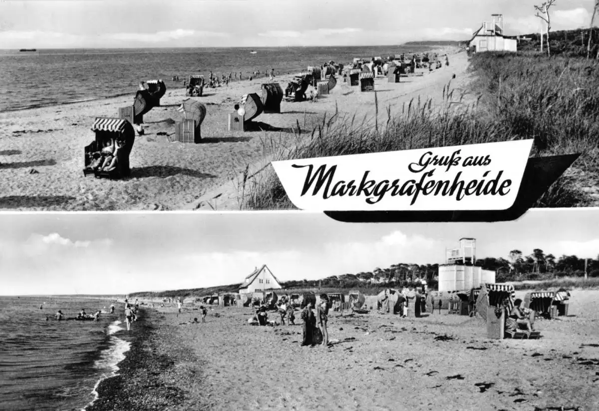 postalisch gelaufen, gestempelt: Rostock, 18.7.65