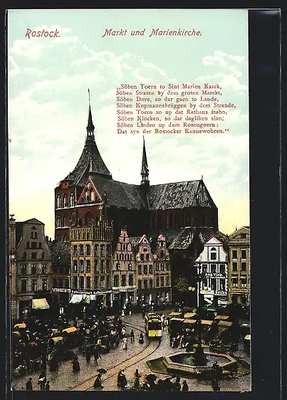 AK Rostock, Markt mit Marienkirche und Strassenbahn