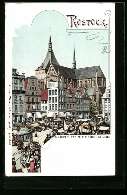 AK Rostock, Marktplatz mit Marienkirche
