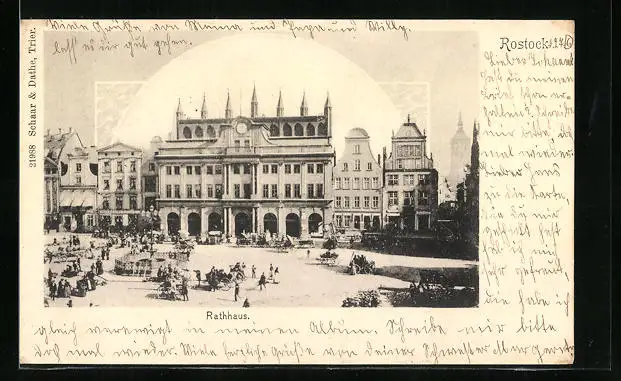 AK Rostock, Marktplatz mit Rathaus