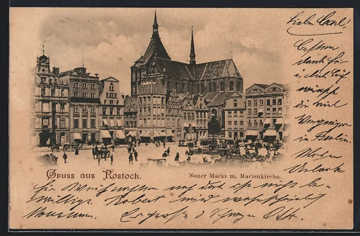 AK Rostock, Neuer Markt mit Marienkirche