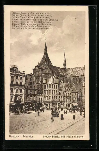 AK Rostock, Neuer Markt mit Marienkirche, Spruch