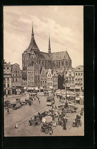 AK Rostock, Neuer Markt mit Strassenbahn