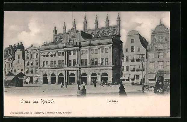 AK Rostock, Rathaus mit Geschäften