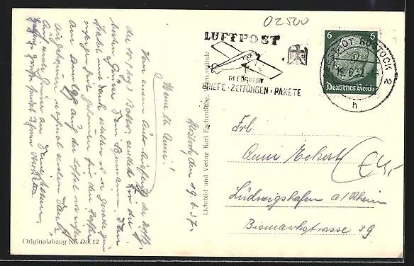 alte Ansichtskarte, gelaufen 1937, Stempelspur, guter Zustand