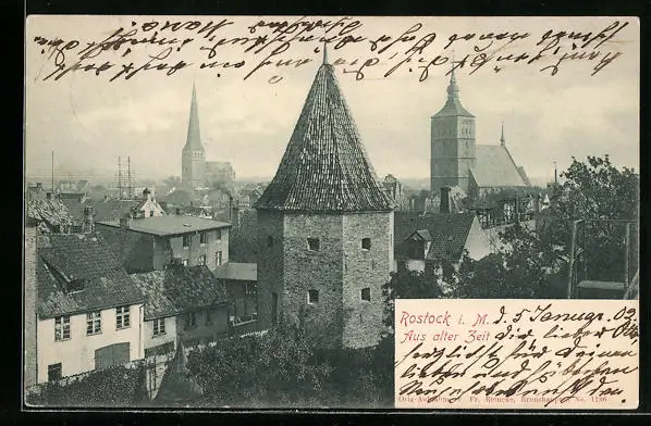 AK Rostock, Teilansicht mit verschiedenen Türmen