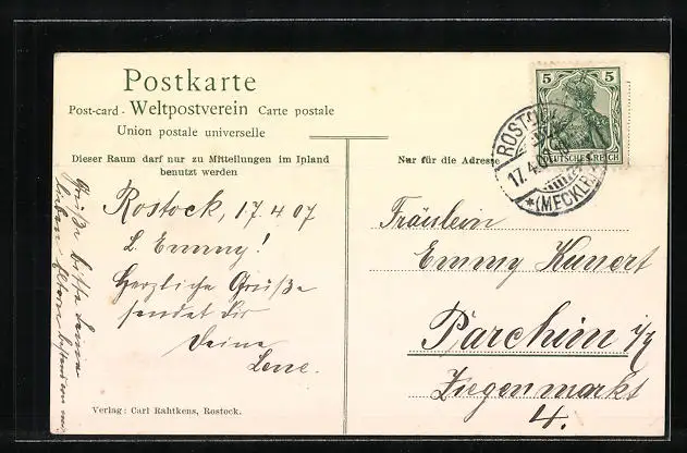 alte Ansichtskarte, gelaufen 1907, guter Zustand