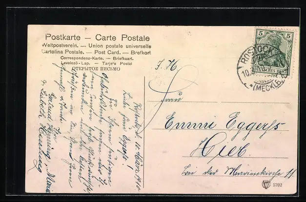 alte Ansichtskarte, gelaufen 1910, Abriebspur, guter Zustand