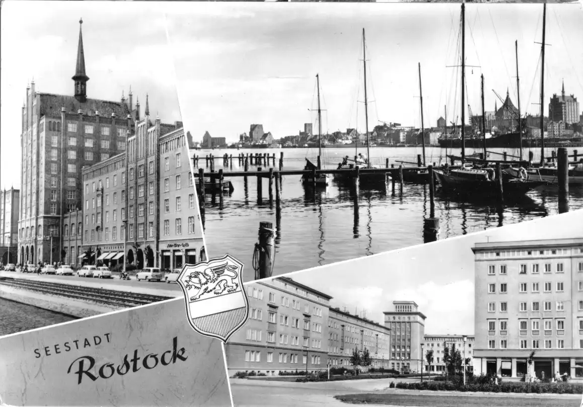 Ansichtskarte Rostock drei Abb. Erhaltung I-II, rückseitig etwas fleckig ungelaufen Druckvermerk: 1963 Herstellungsland: DDR Verlag: Gebr. Garloff KG, Magdeburg - Z3273