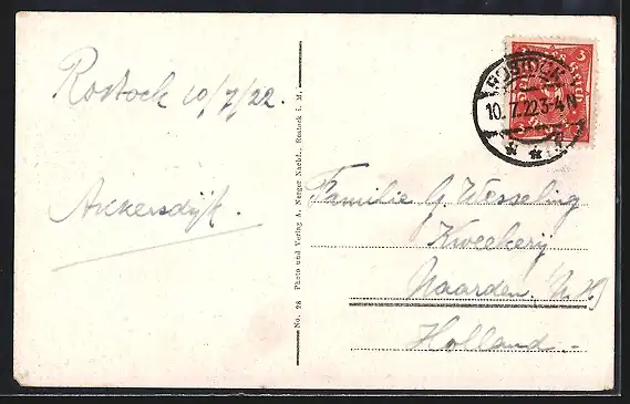 alte Ansichtskarte, gelaufen 1922, Eckknick u. Eckschaden unten re, guter Zustand
