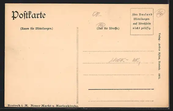 Personenbezogene Daten auf der Rückseite der Karte wurden durch blauen Textmarker unkenntlich gemacht. Die blauen Stellen sind auf die Vorderseite durchgeweicht und wirken sich negativ auf das Postkartenfoto aus