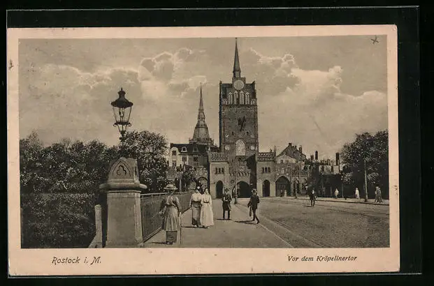 AK Rostock i. M., Passanten vor dem Kröpeliner Tor