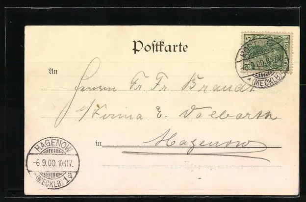 alte Ansichtskarte, gelaufen 1900, guter Zustand