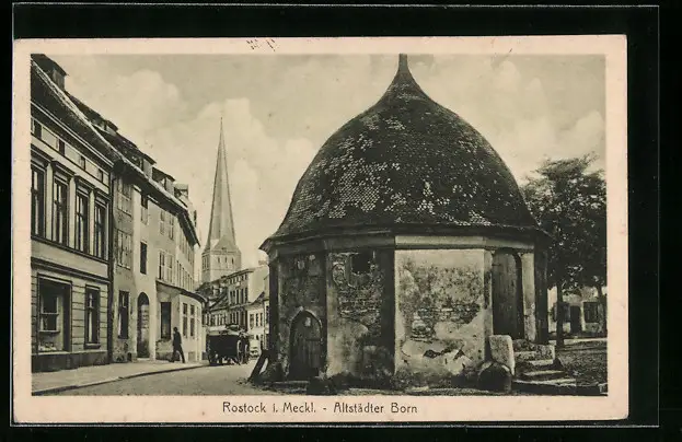 AK Rostock i. Meckl., Alstädter Born mit Blick auf Kirche