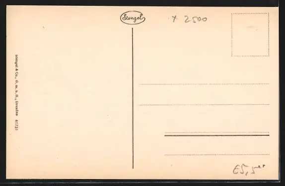 Personenbezogene Daten auf der Rückseite der Karte wurden durch blauen Textmarker unkenntlich gemacht. Die blauen Stellen sind auf die Vorderseite durchgeweicht und wirken sich negativ auf das Postkartenfoto aus