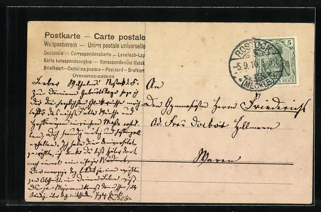 alte Ansichtskarte, gelaufen 1910, guter Zustand