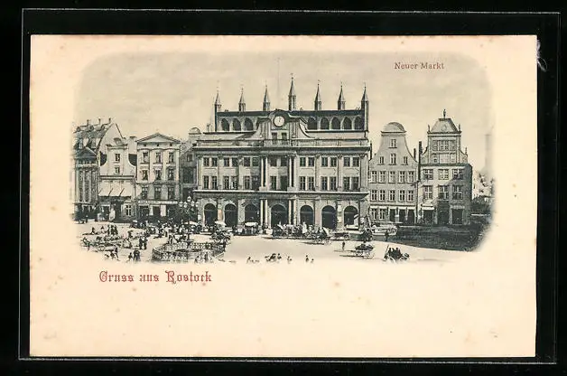 AK Rostock, neuer Markt mit Blick auf das Rathaus